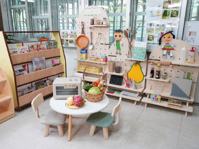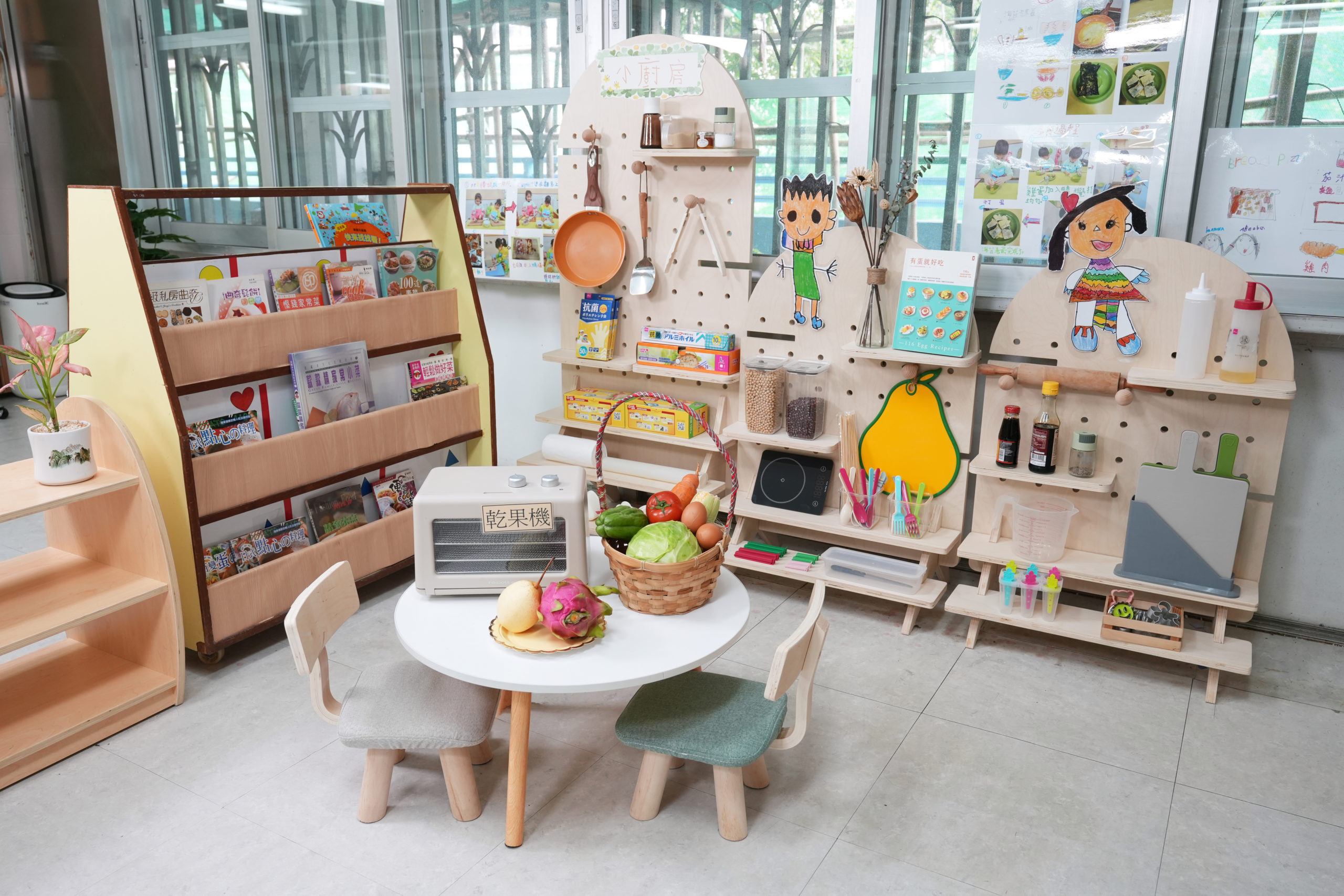 小廚房、圖書室、圖工角及建構角等多功能活動場域,配備豐富的遊戲、玩具、視聽及電腦輔助教材,營造安全、多元、有趣且具啟發性的成長環境,在學生自由遊戲、生活學習及個人化優勢培育中發揮著關鍵作用。